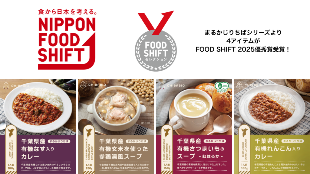 “有機の里づくり”千葉県団体連絡会 <通称:ちばだん>(千葉県千葉市/会長 徳江倫明)と、石井食品株式会社(千葉県船橋市/代表取締役社長執行役員 石井 智康)、および無印良品を展開する株式会社良品計画(東京都文京区/代表取締役社長 清水 智)の千葉事業部の3者が共同開発・販売する「まるかじりちば」シリーズ4商品が、農林水産省が推進するニッポンフードシフト表彰事業「FOOD SHIFTセレクション2025」において、全国の選定産品の中から優秀賞を受賞しました。